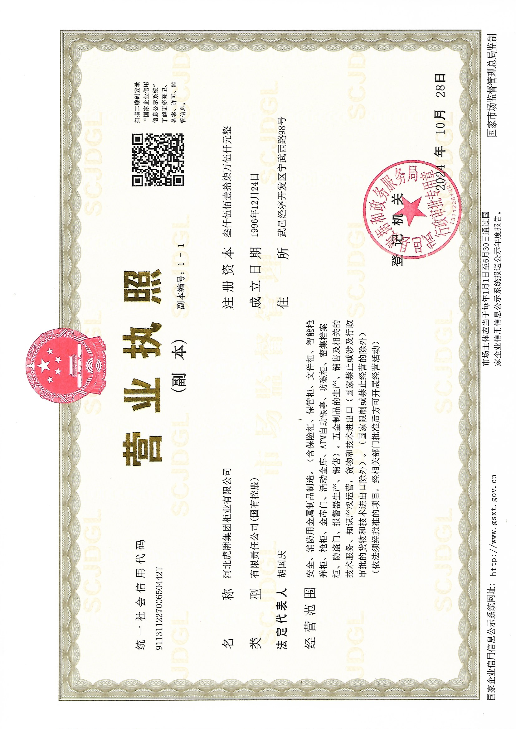 河北虎牌集團柜業有限公司是省級企業集團,1996年報經河北省政府批準組建,前身武邑縣保險柜廠始建于1979年,F有成員企業10家,控股企業6家,屬國有控股有限責任公司?傎Y產2億多元,擁有國內先進的數控沖裁、拉伸、折彎、焊接設備和噴塑、成裝生產線。產品設計全部由計算機立體設計完成,主要生產保險柜、檔案裝具、智能槍彈柜、銀行設備等九大系列100多個規格型號,年生產能力60萬臺套。技術力量雄厚,曾先后主持起草了河北省保險柜產品的地方標準和輕工部行業標準;⑴破放萍矣鲬魰裕麚P國內外,虎牌商標1981年注冊,是具有悠久歷史的可持續發展的品牌。… 更多》